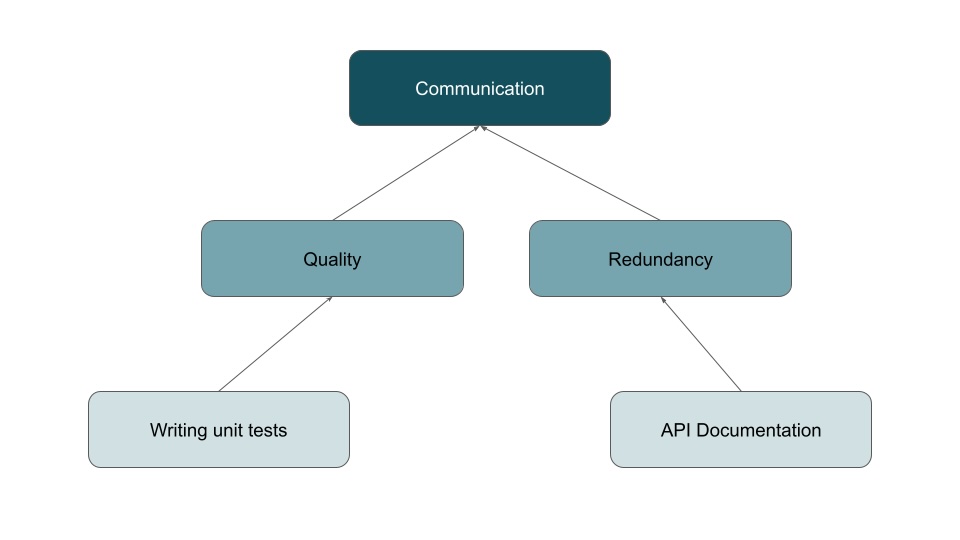However, if the team publishes an API and if anyone in the world can consume it, then it becomes essential that we add documentation (which could be in the form of comments and using tools to generate docs out of it). Here the documentation is important since it is now guided by a couple of principles Humanity (for external devs who consume our APIs) and Redundancy (by having tests + docs).