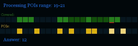 pois (sorted): 3, 6, 10, 12, 15, 16, 19, 21
